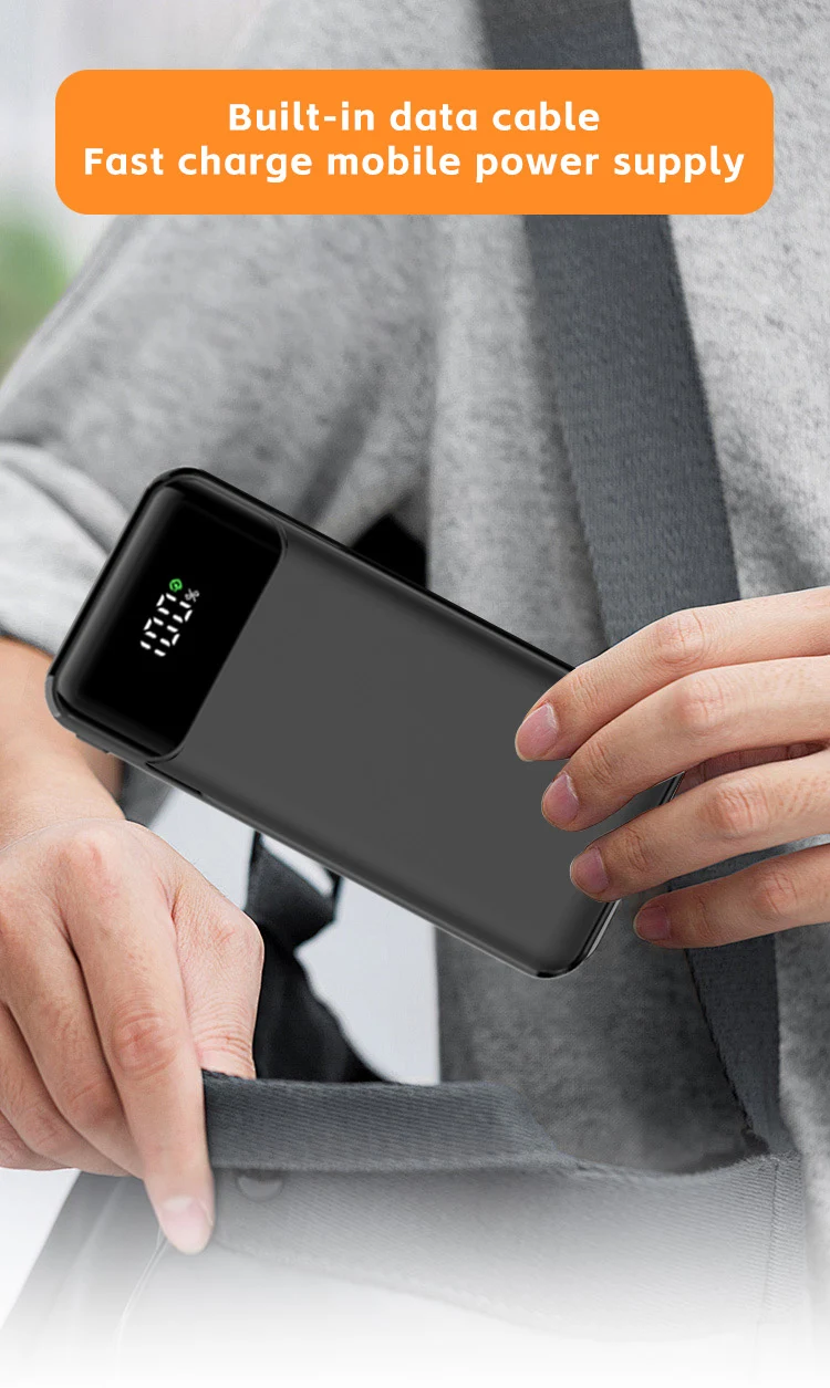 Bulk Wholesale High Capacity 20000mAh Power Bank With LED Display Fast Charging Power Bank Built in Cables