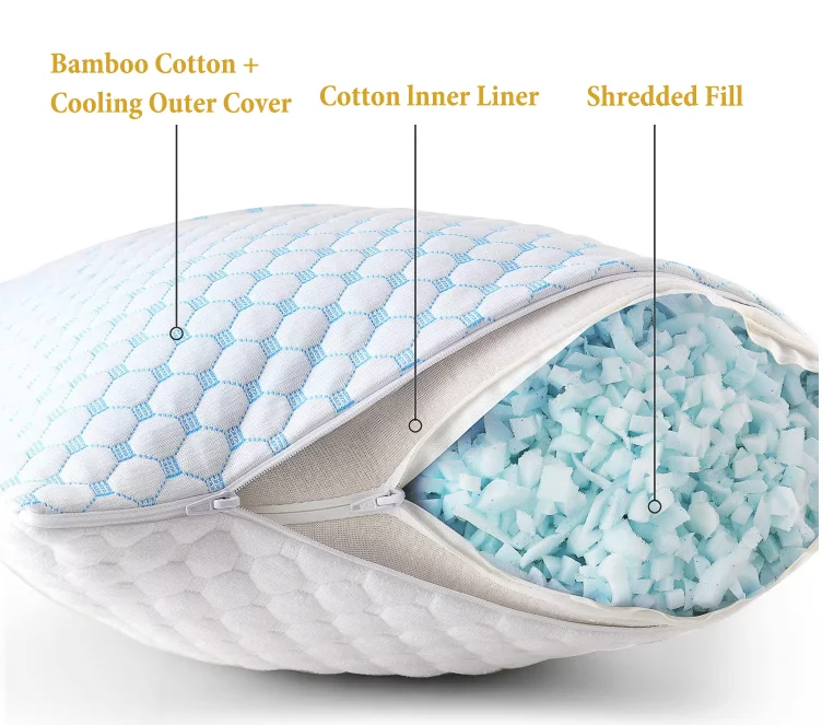 Cooling Bamboo Fabric Orthopedic Memory Foam Adjustable Sleep Pillow Neck Support Shredded Memory Foam Pillow
