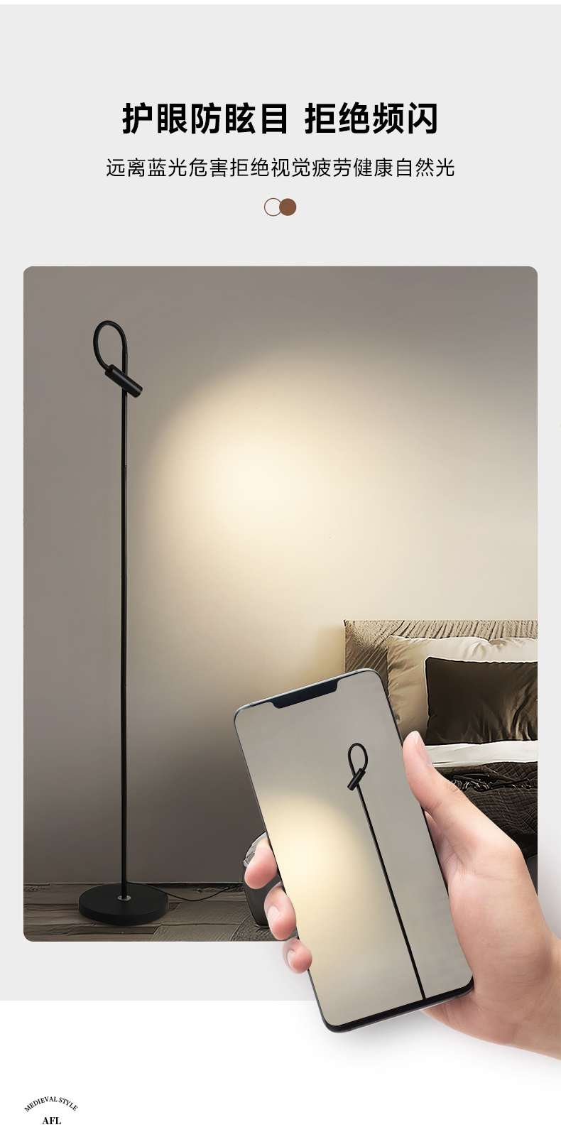 Floor lamp spotlight can be turned around, background wall mural lamp next to living room sofa, eye protection reading vertical original design floor lamp