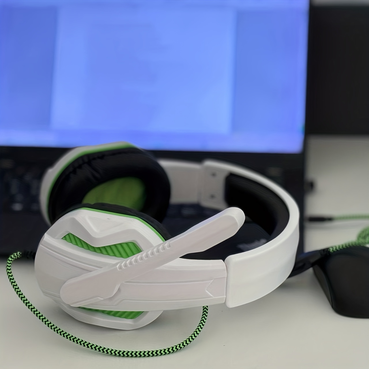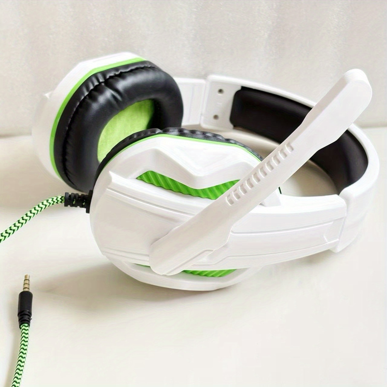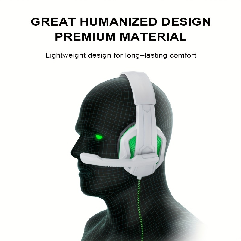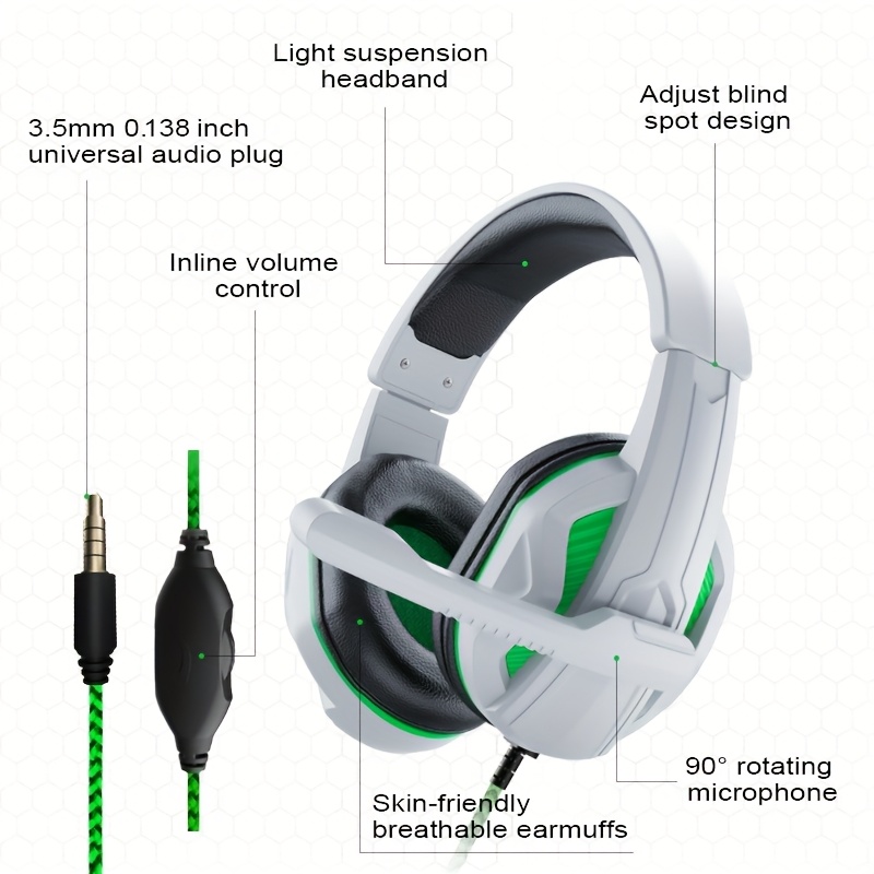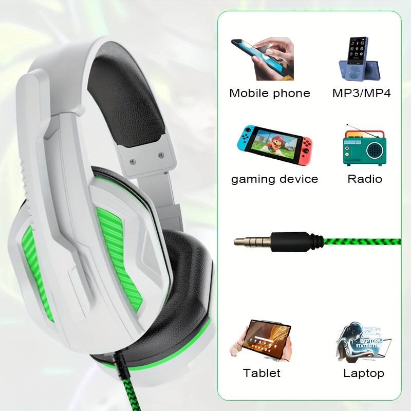 for PC/Laptop/Smartphone Wired Gaming Headset with Noise Isolation & Microphone, 3.5mm Audio Jack, Volume Control, Comfortable Over-Ear Pads & Adjustable Headband, Compatible with // Switch/PC (White & Green)Twisted headband to prevent violence and comfortable headband allow for long gaming sessions without fatigue.Adjustable headbands suitable for various head shapes.