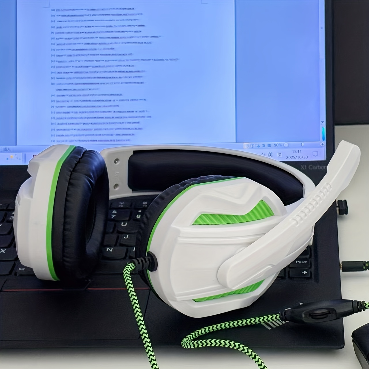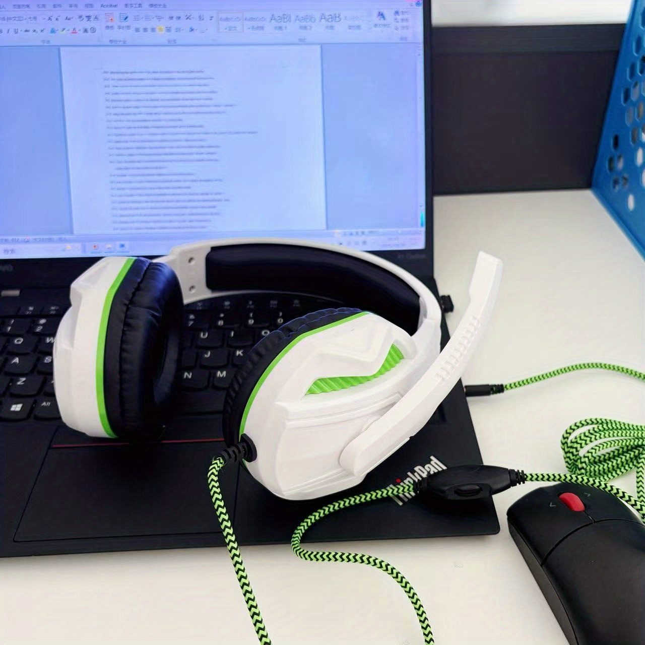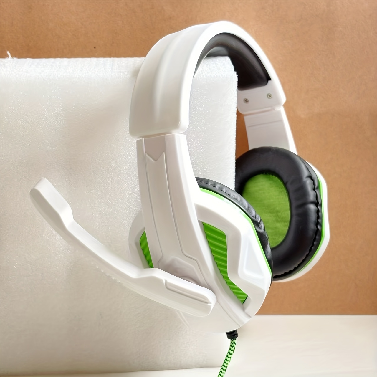 for PC/Laptop/Smartphone Wired Gaming Headset with Noise Isolation & Microphone, 3.5mm Audio Jack, Volume Control, Comfortable Over-Ear Pads & Adjustable Headband, Compatible with // Switch/PC (White & Green)Twisted headband to prevent violence and comfortable headband allow for long gaming sessions without fatigue.Adjustable headbands suitable for various head shapes.