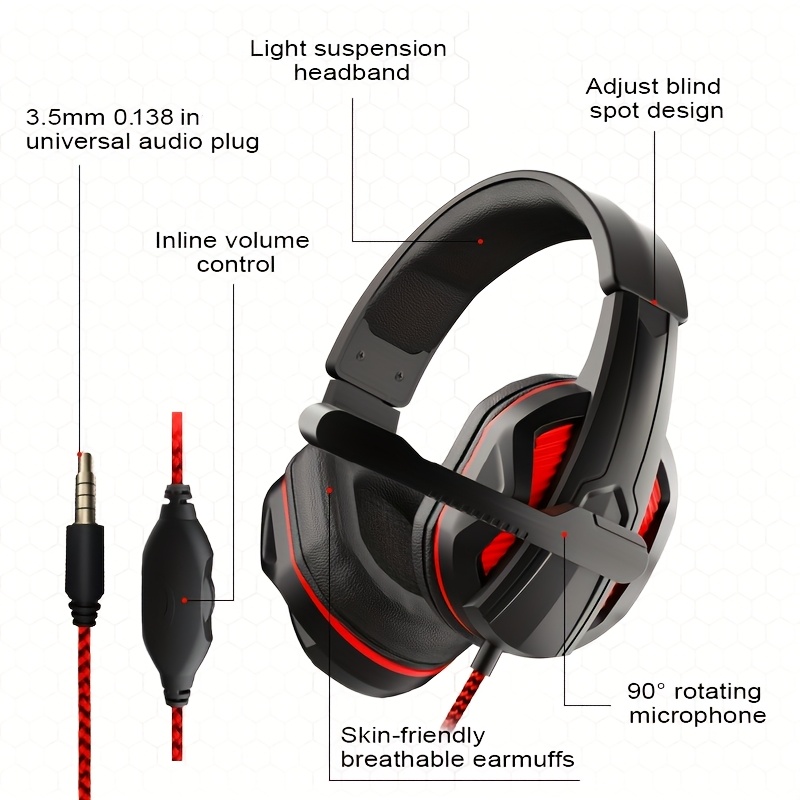Wired Gaming Headphone Universal 3.5mm audio jack is suitable for all kinds of devices with music function Ergonomically designed with superior comfortable and good air protein over-ear pads.