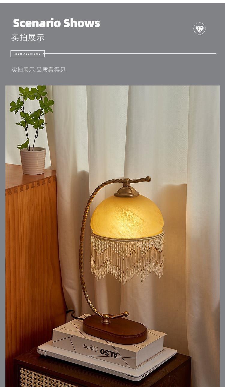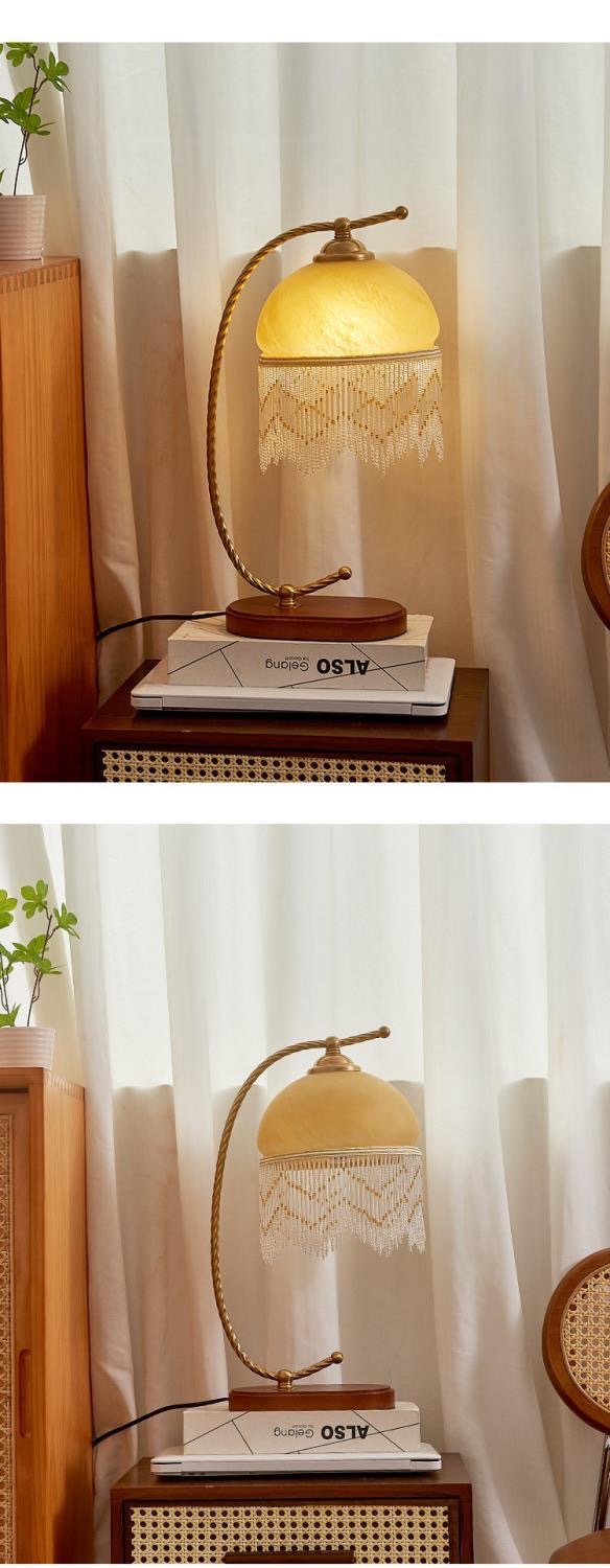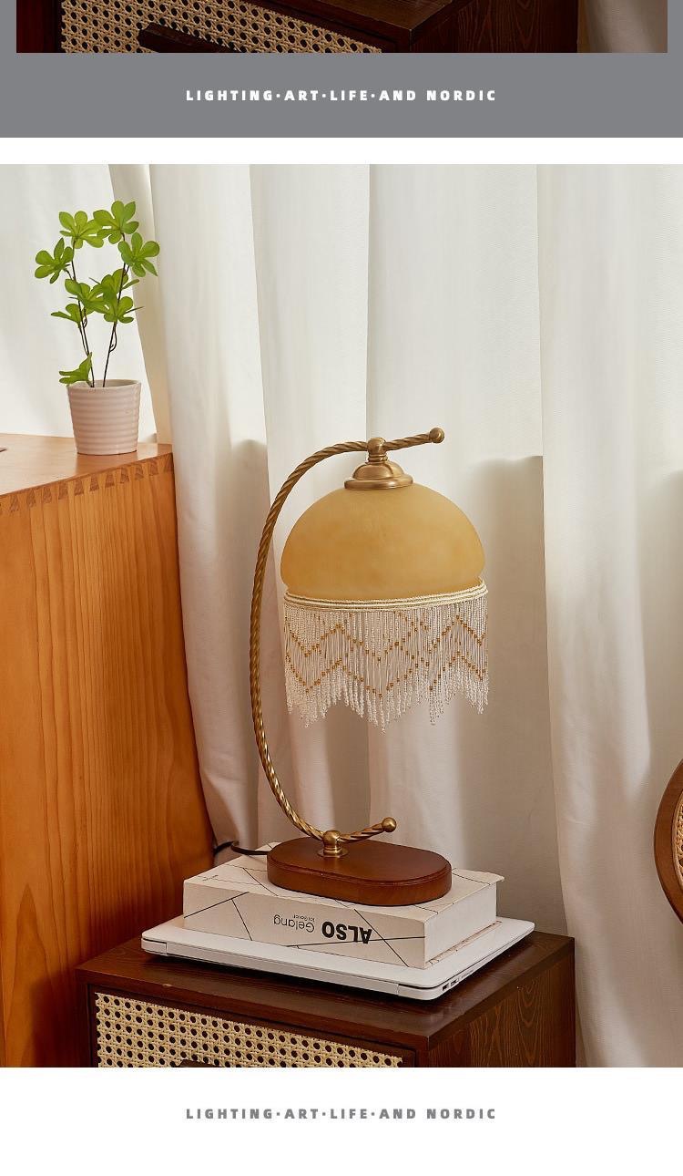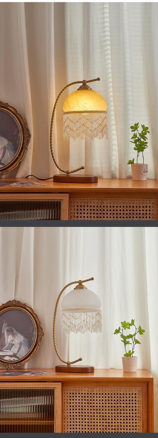 French tassel glass cream desk lamp American vintage bedroom bedside restaurant bar cafe entrance desk lamp