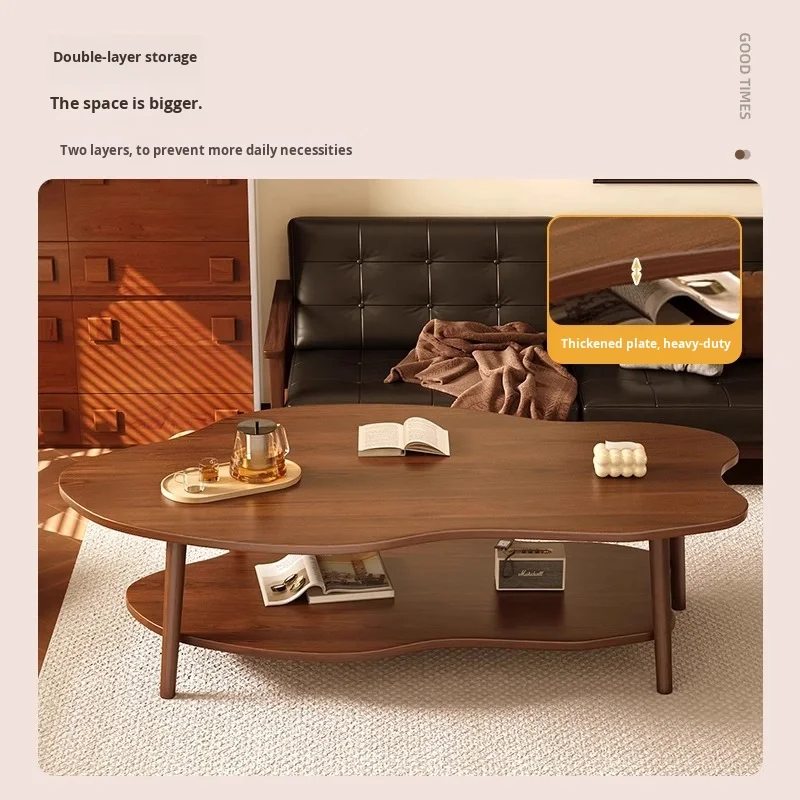Modern Luxury Double-Layer Cloud Sofa Table New Easy-to-Assemble Movable for Small Apartments Rental Houses Tea Coffee Table for