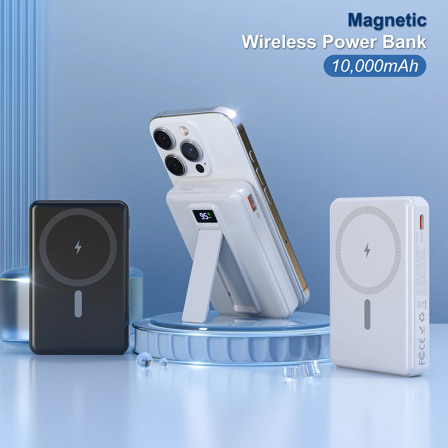 New 15W 3-in-1 Magnetic Wireless Battery Pack 10000mAh Portable Charger 3 in 1 Power Bank & Station
