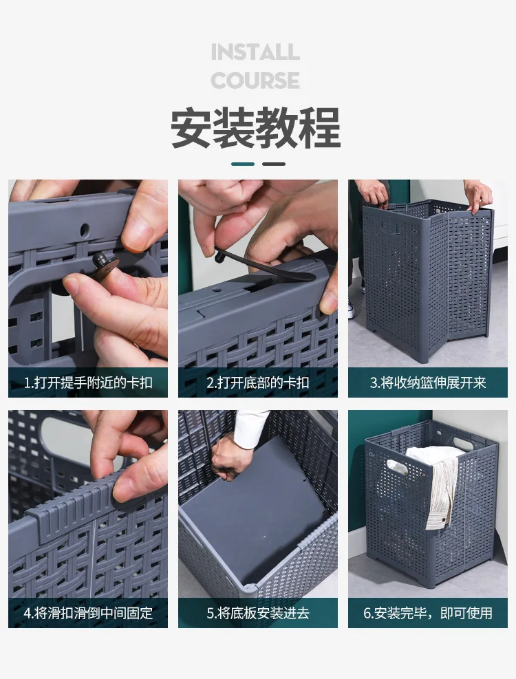 Plastic Laundry Organizer Hamper Dirty Clothes Storage Basket
