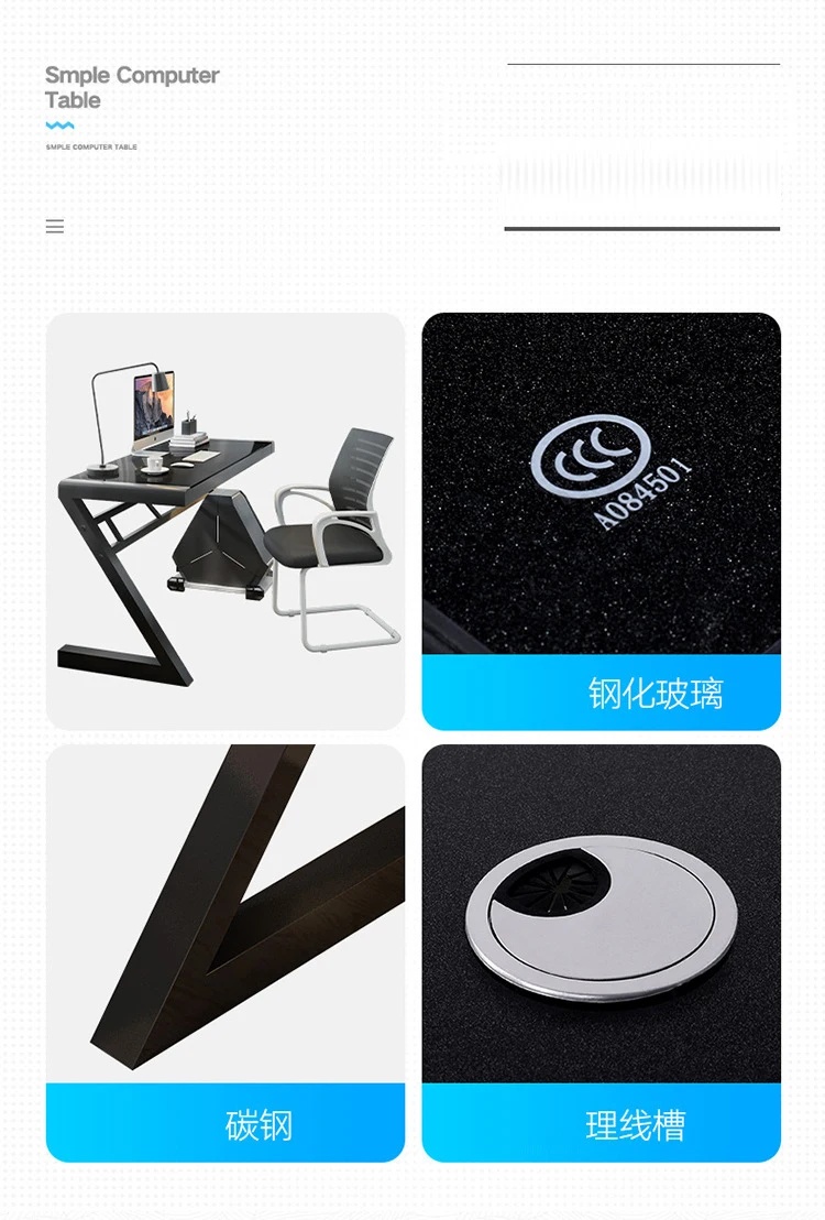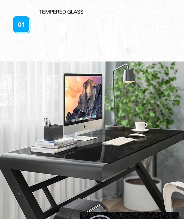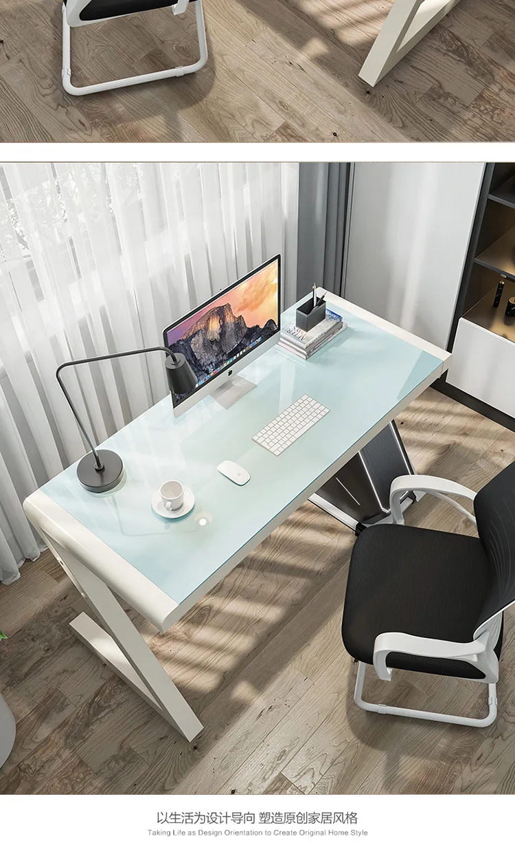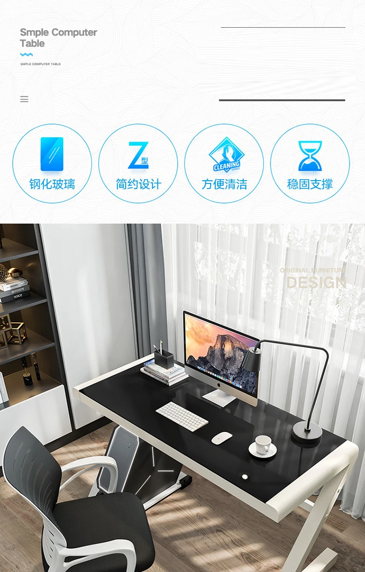 Simple Toughened Glass Computer Desk Home Learning Z-shaped Leg Design Desk Gaming Table