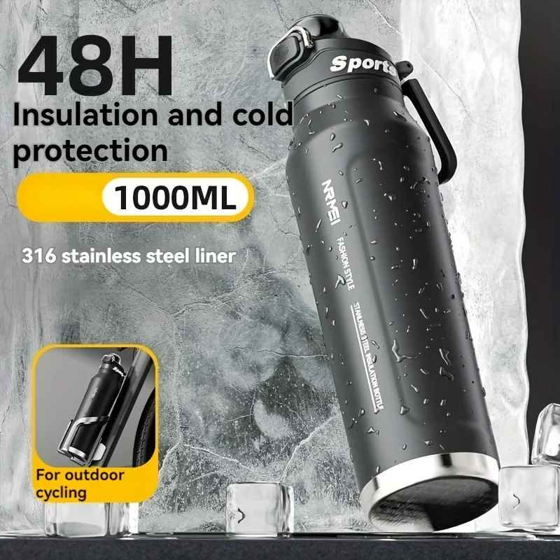 Stainless Steel Insulated Bottle with Handle Outdoor Portable Metal Vacuum Flasks Leak-proof Thermos Bottle for Sport